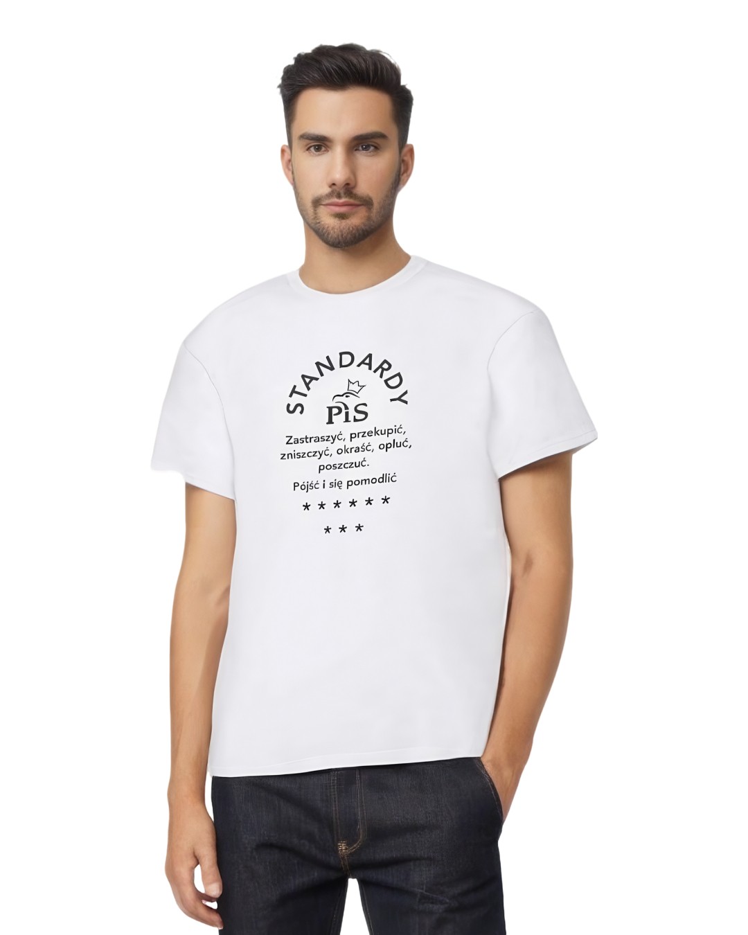 Wyraź swoje zdanie bez słów. Koszulka z mocnym, minimalistycznym napisem STANDARDY PIS.